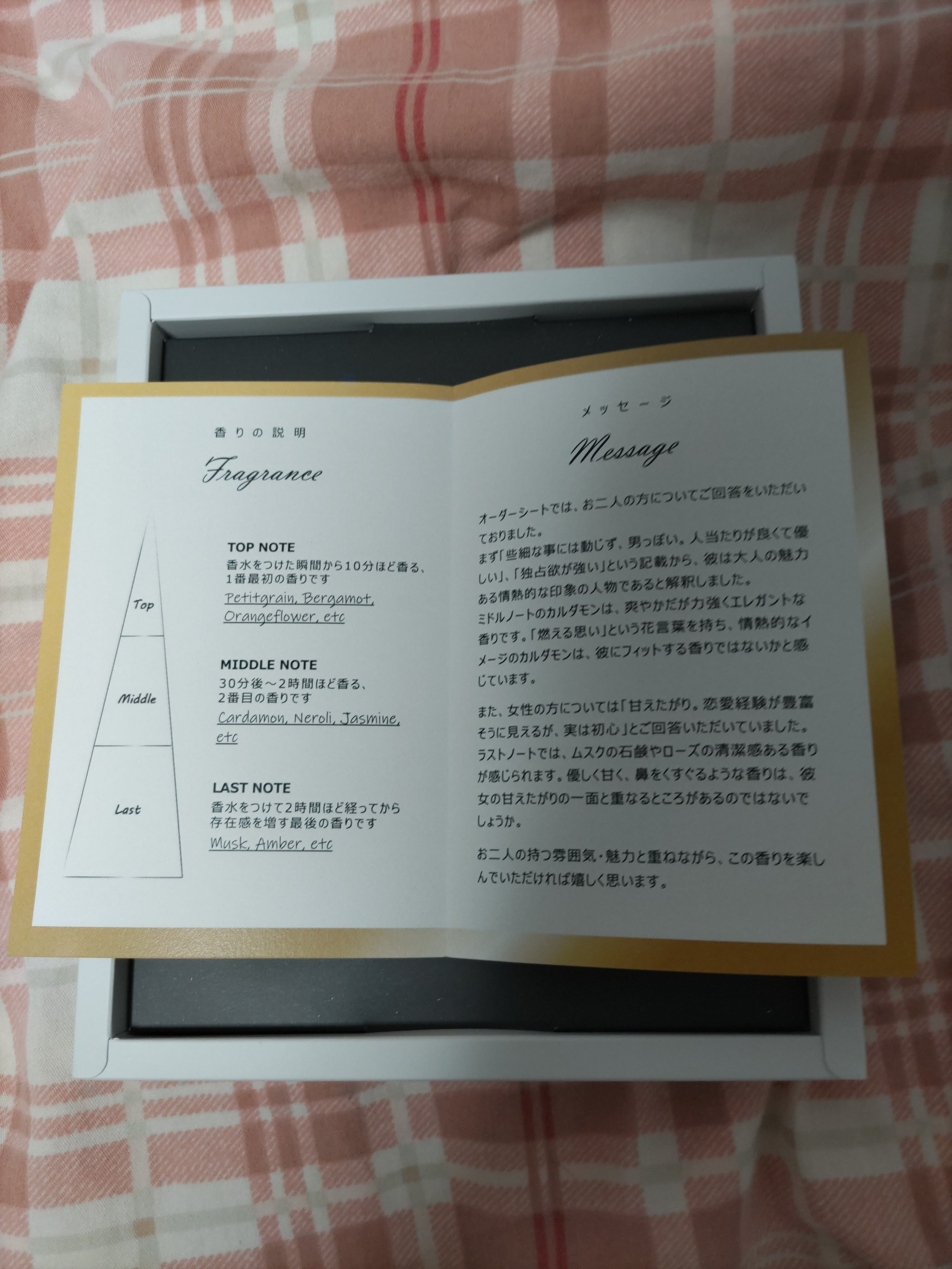 ただ、香り自体は物凄く好みだったので良かったです。苦手な香りは事前にお伝えする事もできますし。