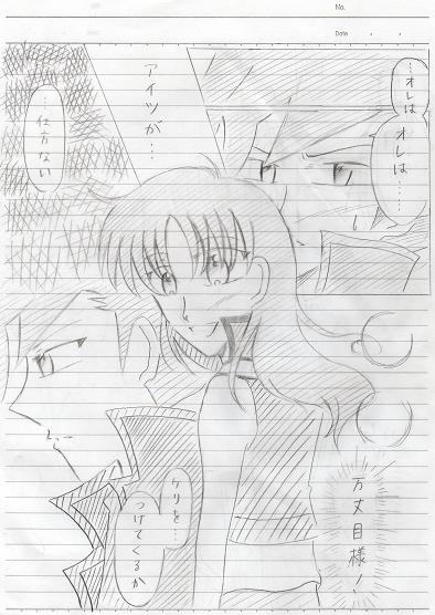 だいぶ前に最後のコマをラクガキで描いて、(あ、これいつか使えるかも・・・)と思ってて今回片付けしてたらそれが描いてあるノートを発見して、今回に至ったわけです。しかしその時より何か女々しくなったなこの万丈目wあと、カケアミとか初めて手描きで描きましたがダメでしたー(笑)