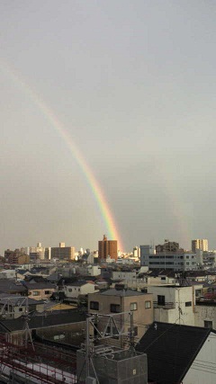 仕事から帰ってちょっとしたらえらい見事に綺麗な虹が出ておりました。親に急かされて私が撮影(笑)この日、天気が不安定でしたからねー。二重になってるのがよく見ると分かります。