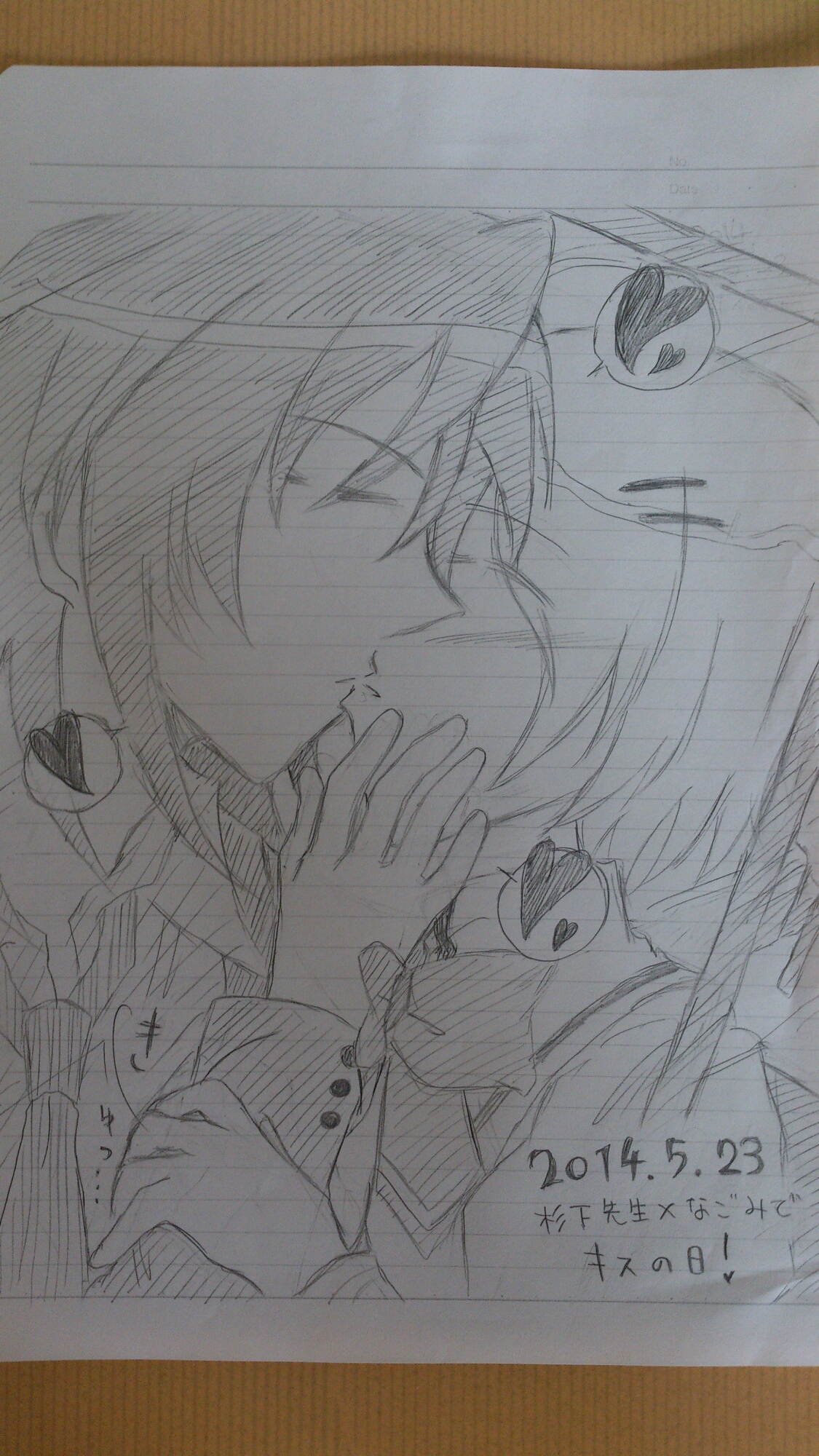 一ヶ月近く前になりますが(絵自体は翌日に描いていた…)、初めてキスの日に便乗したので載せます。もちろん杉なご。